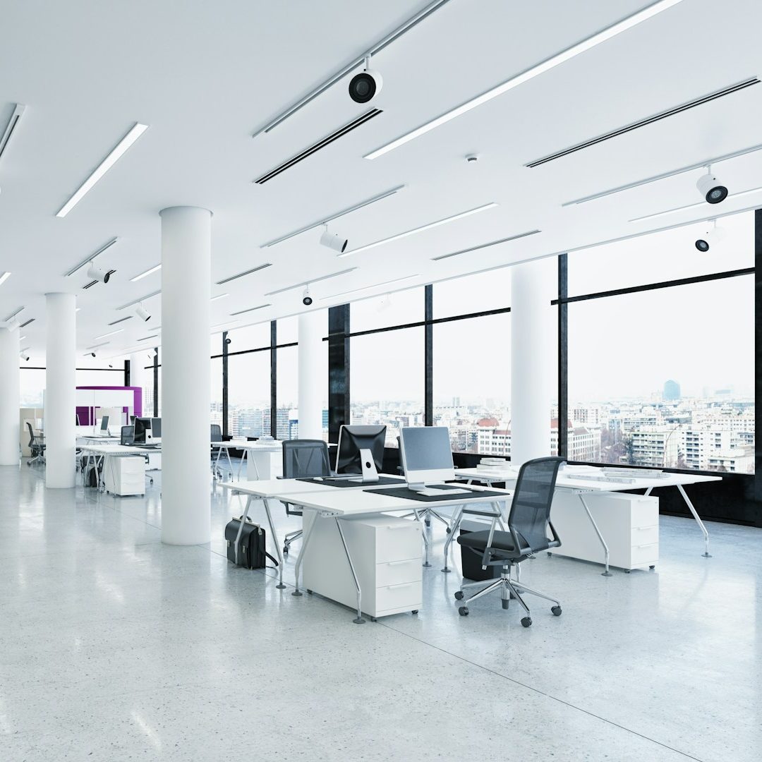 Aufbau von Arbeitsplätzen, Konferenzräumen, Empfangs- und Gemeinschaftsbereichen